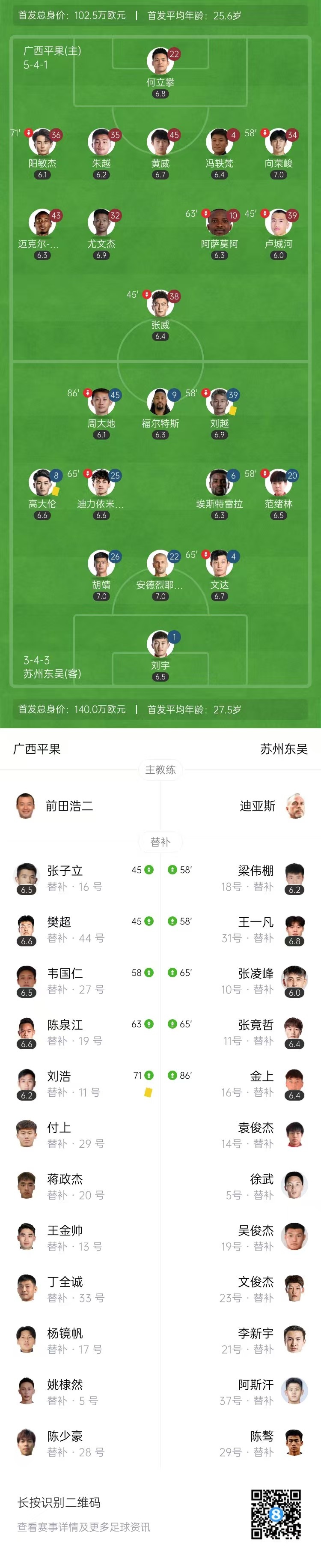 4月11日讯 4月11日19点40分,苏超首轮,扬州队对阵苏州队。上半场,两队都未能破门。下半场,杨高明包抄打破僵局。最终苏州队1-0战胜扬州队取得开门红。本场比赛过后,苏州队积3分暂列第四,扬州队积0分暂列第十...发表于:04月11日