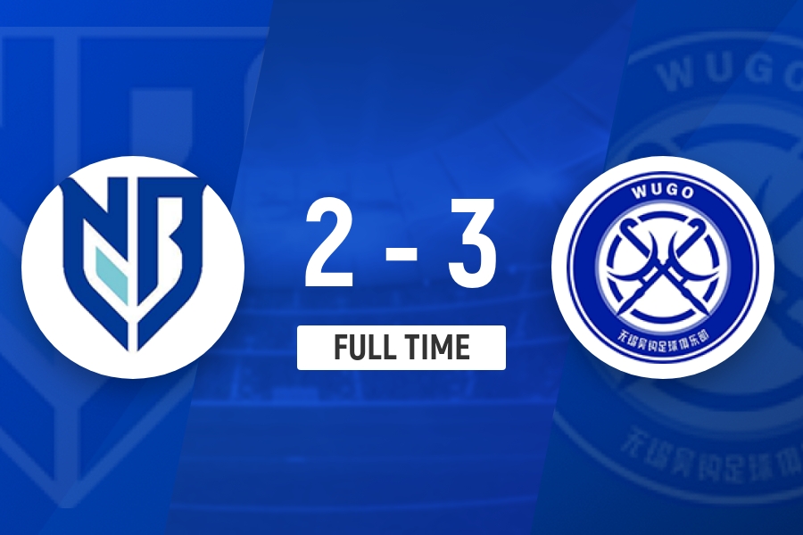 伤停补时5分钟。全场比赛结束,宁波2-3无锡吴钩。