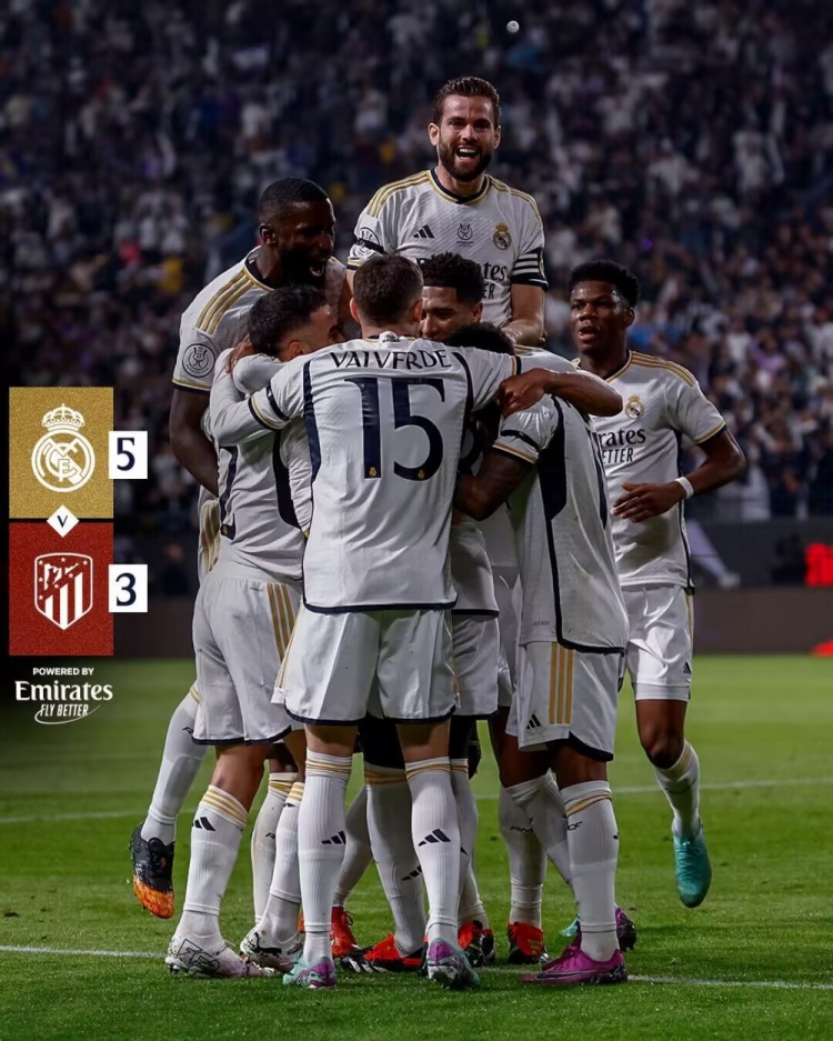 西超杯-皇马加时5-3马竞进决赛 迪亚斯生吃奥布拉克&三后卫破门