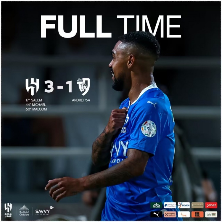 沙特联-新月3-1塔伊距联赛不败仅差1轮 迈克尔传射马尔科姆破门