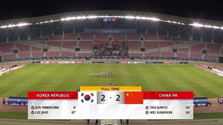 U17亚预赛-国少遭绝平2-2韩国 国少3胜1平列小组第二