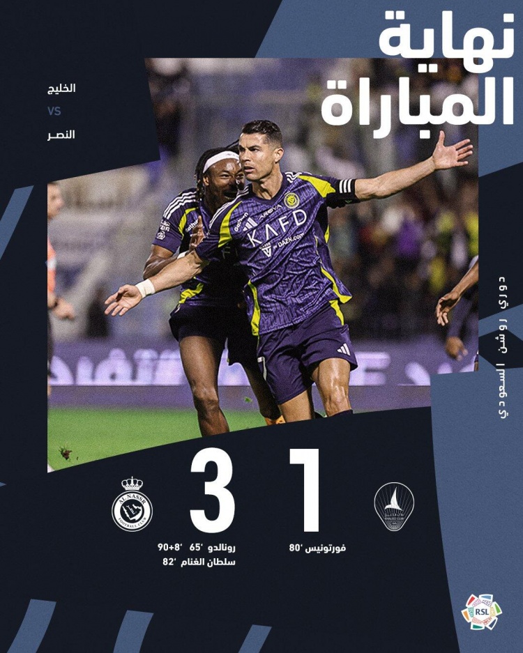 利雅得胜利首发:24-本托、2-哈纳姆、3-西马坎、12-纳瓦夫(45'83-纳伊迪)、78-奥贾米(91'4-法蒂勒)、11-布罗佐维奇、19-哈桑(45'60-哈卡维)、25-奥塔维奥、7-C罗、10-马内、20-安吉洛(72'17-海巴里)