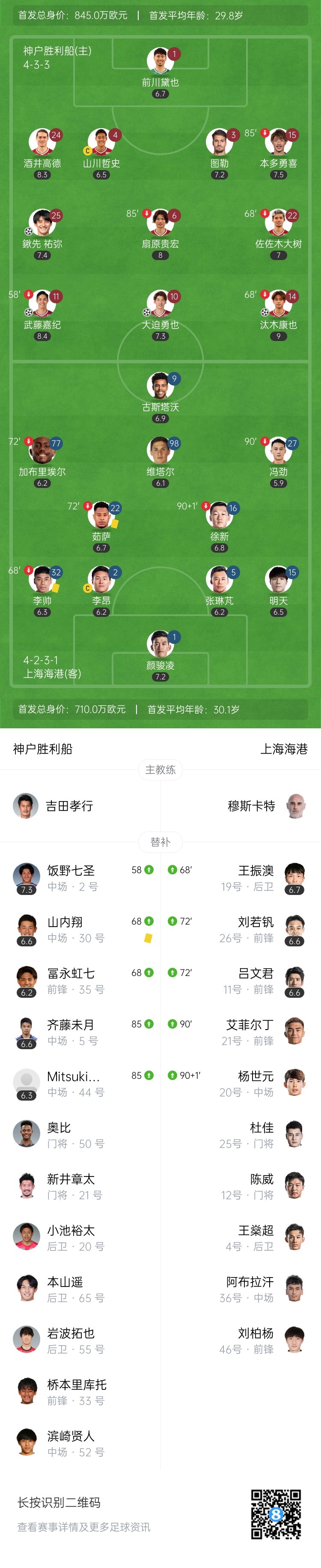 2月11日讯 北京时间2月11日18时,亚冠精英联赛东亚区第7轮,上海海港做客神户大学纪念球场挑战神户胜利船。上半场,上海海港场面被动,武藤嘉纪破门为神户胜利船首开纪录,酒井高德射门中框,佐佐木大树头球破门因越位被吹,上海海港半场仅2脚打门,0次射正。半场战罢,上海海港暂0-1神户胜利船;下半场,锹先祐弥、汰木康也三分钟内连入两球为神户胜利船扩大比分优势,富永虹七破门被吹,张琳芃手球送点,颜骏凌将大迫勇也主罚的点球扑出,但仅仅过了三分钟,大迫勇也卷土重来,扫射破门将比分再次改写!全场比赛结束,上海海港0-4神户胜利船!