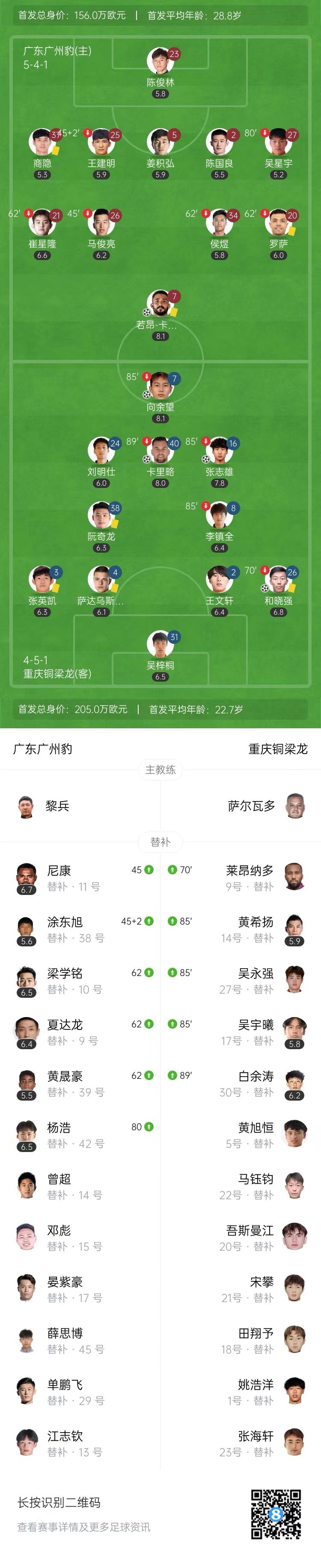 7连胜领跑!铜梁龙5-1广州豹 向余望8场8球 18岁张志雄任意球破门