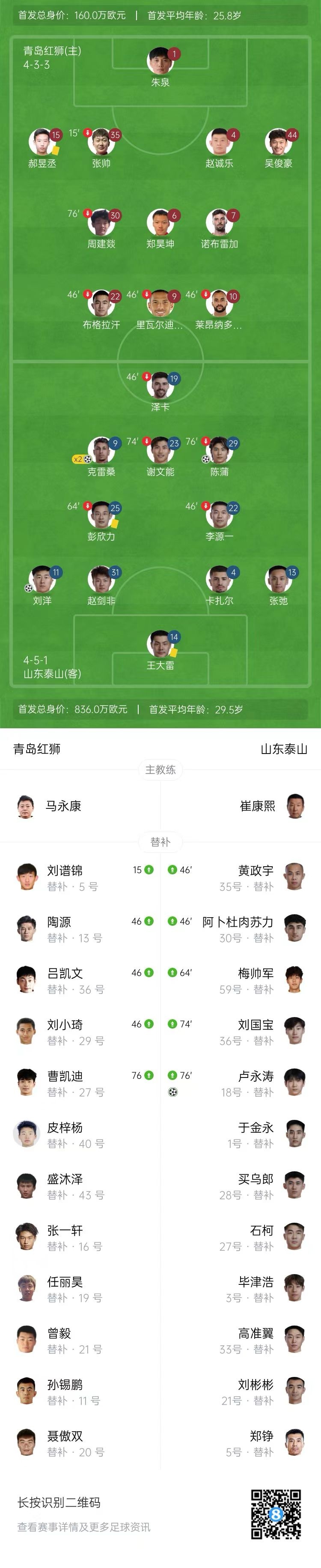 第51分钟,青岛红狮后场失误送礼,谢文能分球中路,克雷桑推射被门将单掌扑出。↓