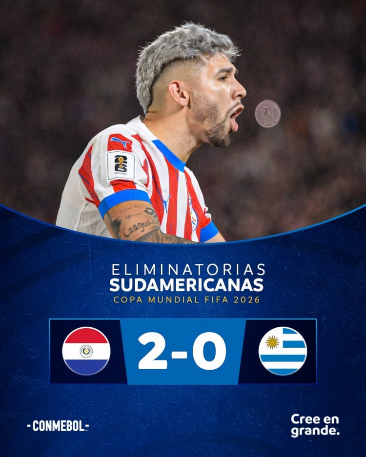 6月6日讯 北京时间6月6日07:00,世预赛南美区第15轮乌拉圭挑战巴拉圭的比赛在查科后卫球场进行,上半场梅莱出击失误加拉尔萨头球破门首开记录,下半场阿劳霍送点恩西索点射扩大比分,最终乌拉圭0-2巴拉圭四轮不胜,巴拉圭暂升第3。