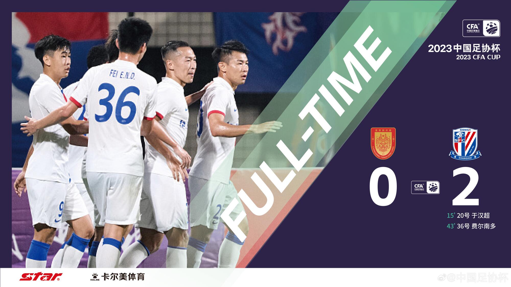 足协杯-申花2-0重庆铜梁龙进4强 于汉超费尔南多破门徐皓阳造两球