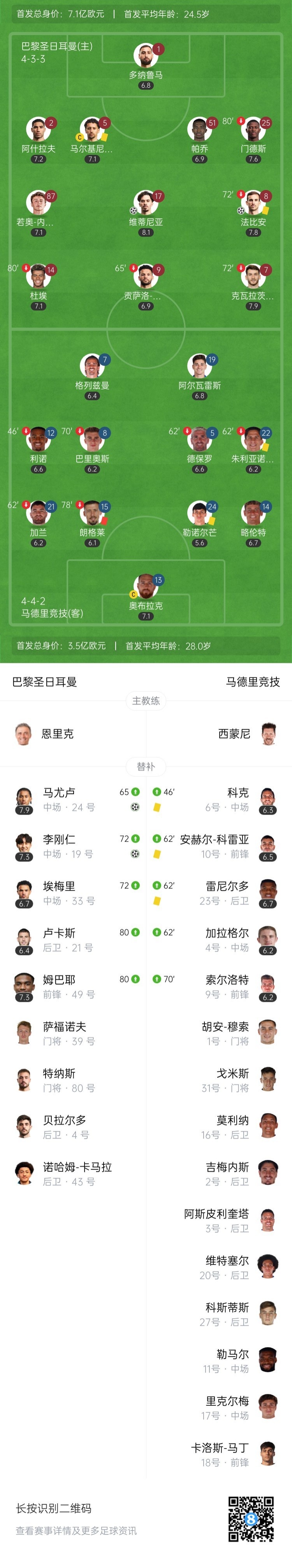 横扫!巴黎4-0完胜马竞 维蒂尼亚破门 小蜘蛛进球被吹朗格莱染红